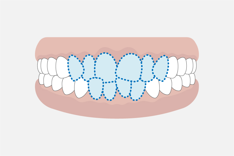 歯並びが重なってしまうことで、虫歯や歯周病の原因となる歯垢が溜まりすくなります。