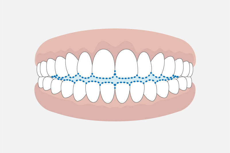 ワイヤー矯正とは、歯の表側にブラケットを取り付け、そこにワイヤーを通して歯並びを整える治療方法です。